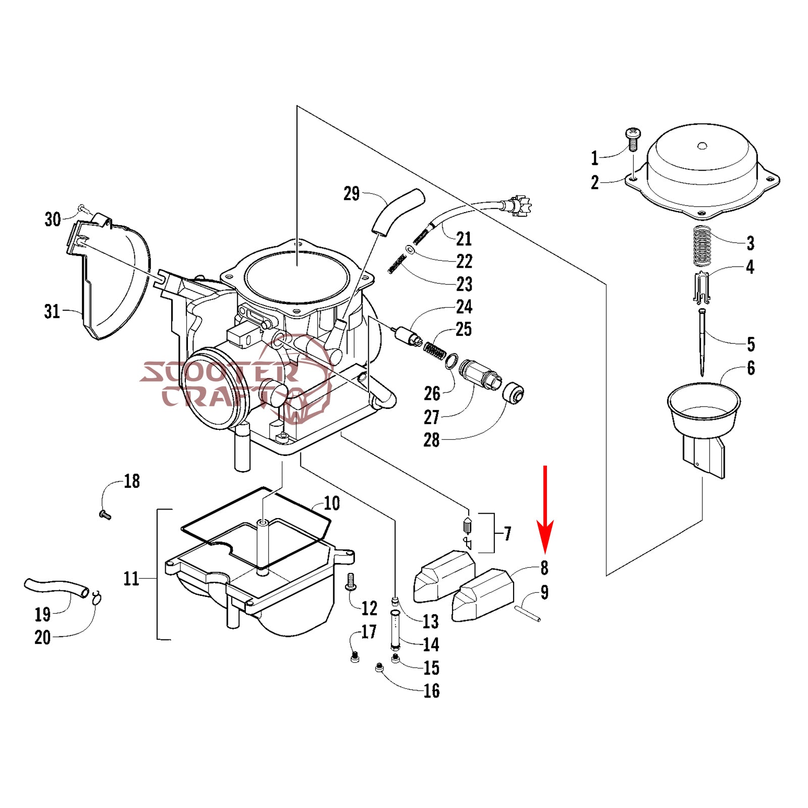Carburetor float Arctic Cat DVX 300 2X4 09-15, Utility 300 2X4 10-16, Alterra 300 2017-2024