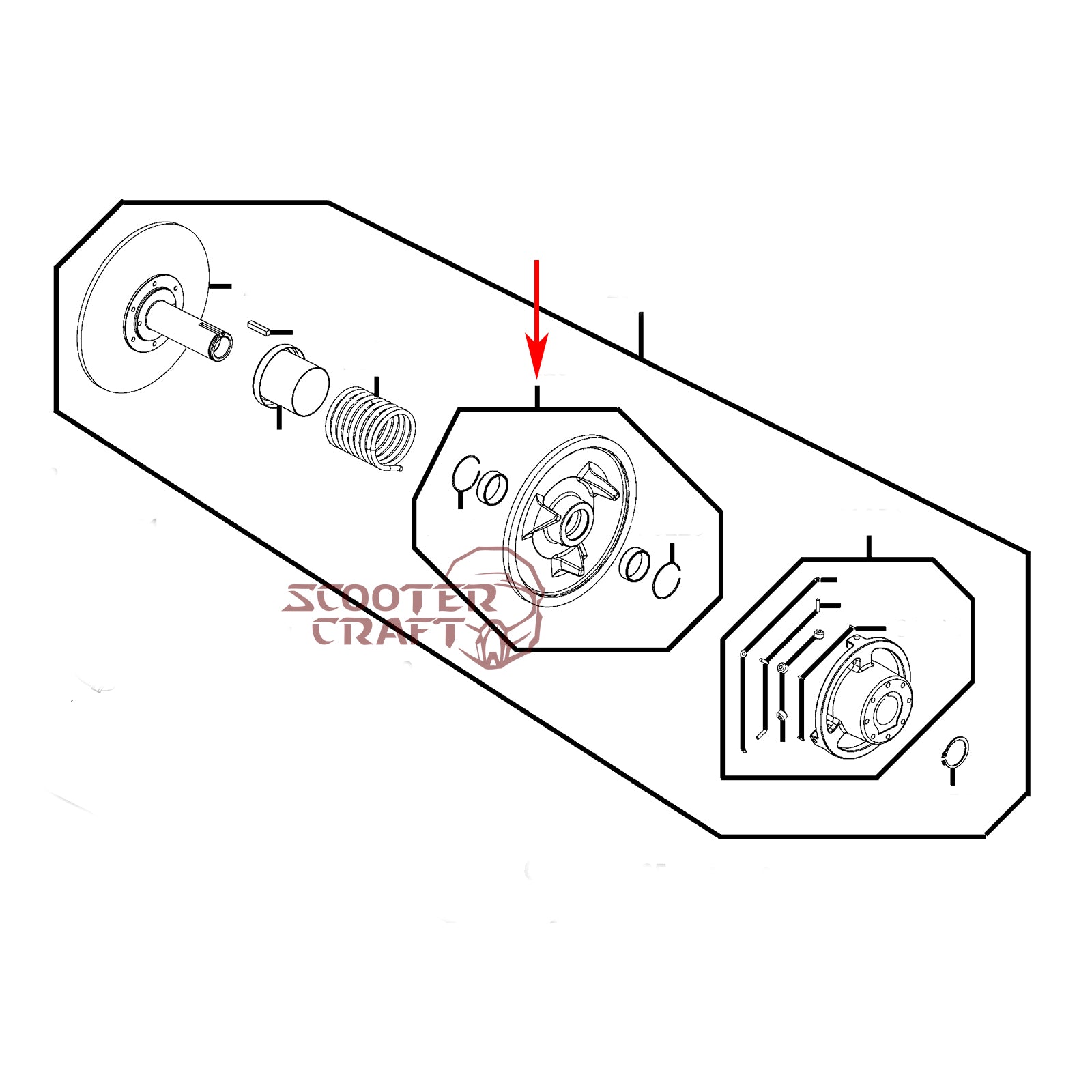 Clutch movable driven face Arctic Cat ATV 366 4X4 Automatic, 400 TRV, 425 CR, Alterra 450, XC 450 EFI, UTV Prowler 500
