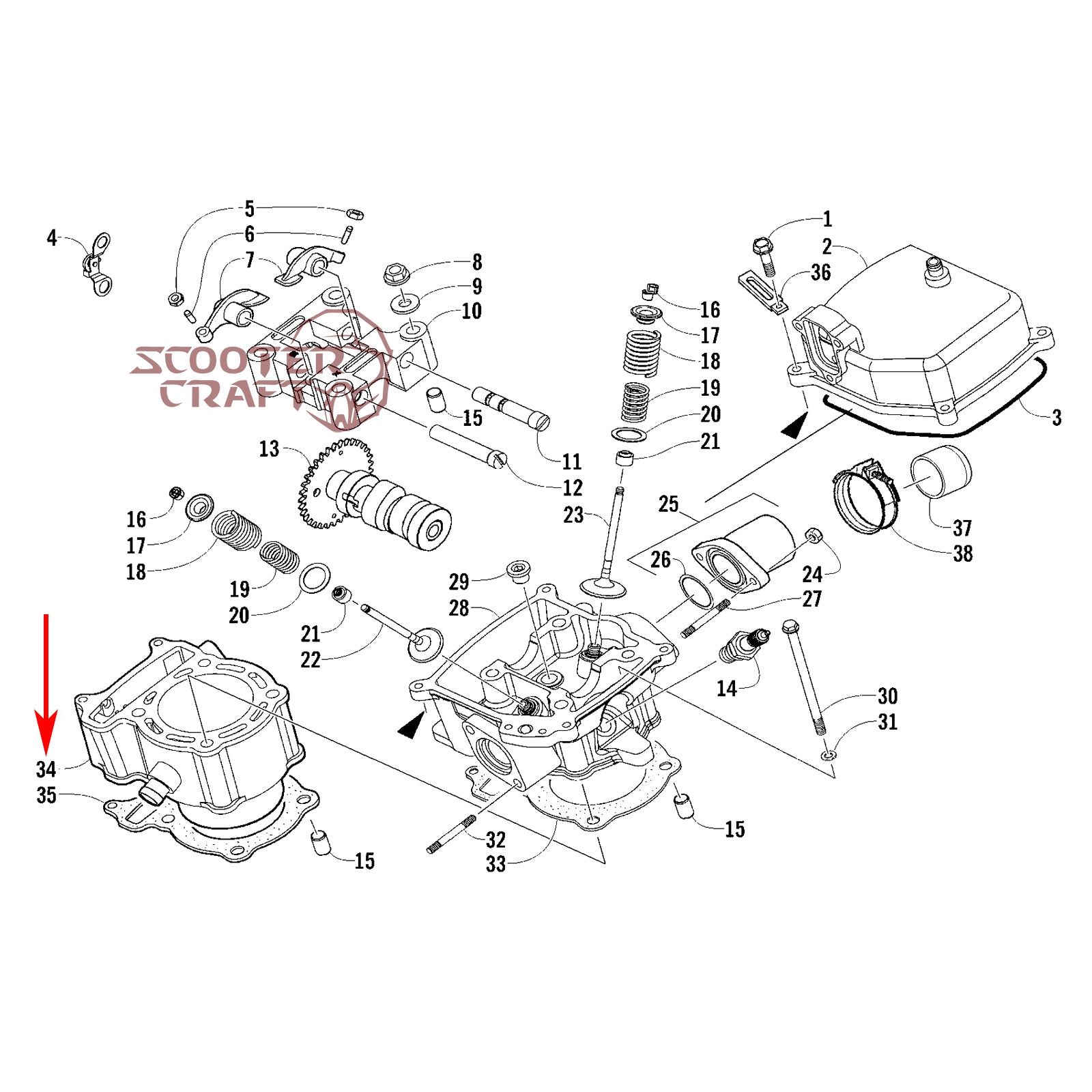 Cylinder Arctic Cat DVX 300 2X4 09-15, Utility 300 2X4 10-16, Alterra 300 2017-2024