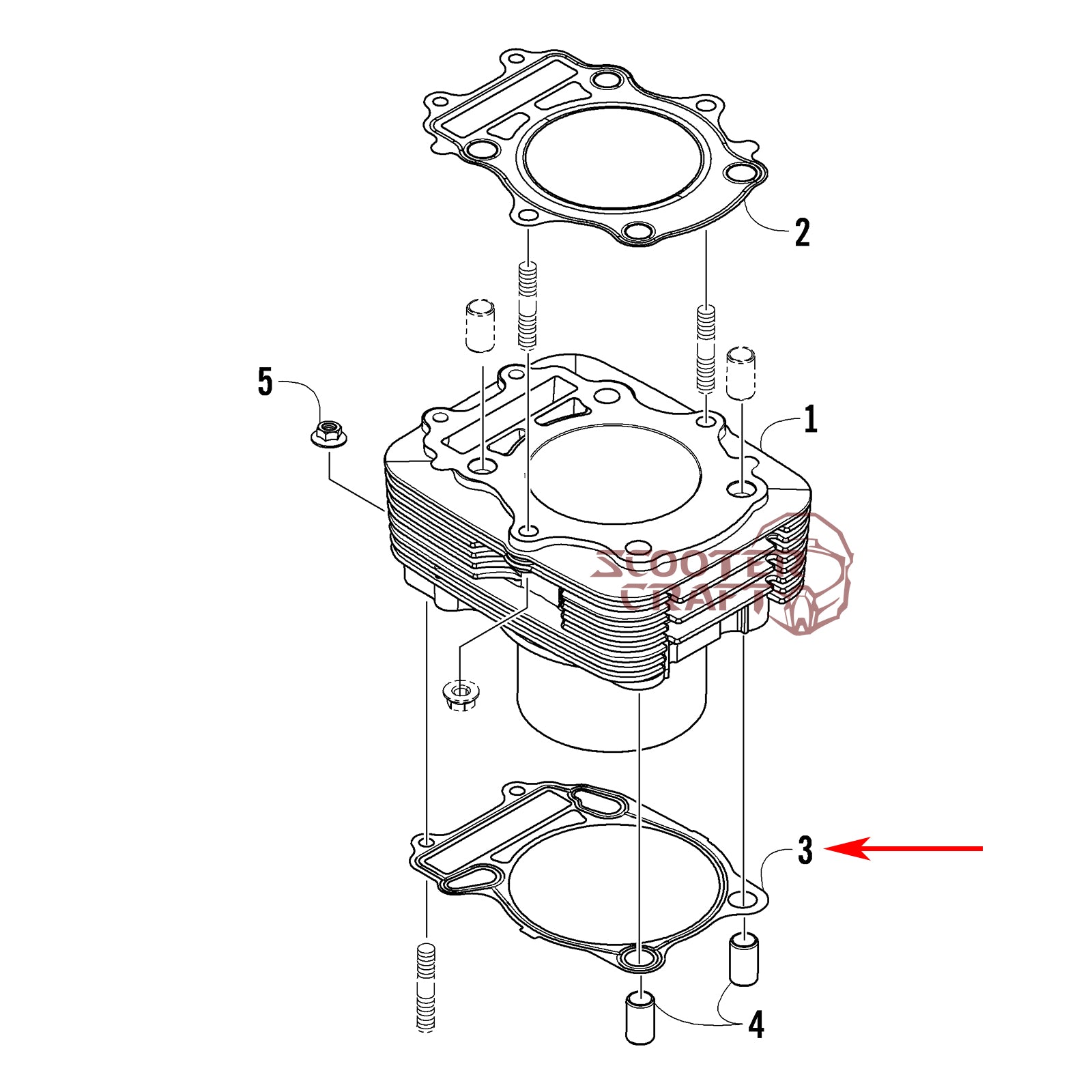 Cylinder base gasket Arctic Cat ATV 350 CR, 366 4X4 Automatic 08-11, 400 TRV, 400 CR, Alterra 400