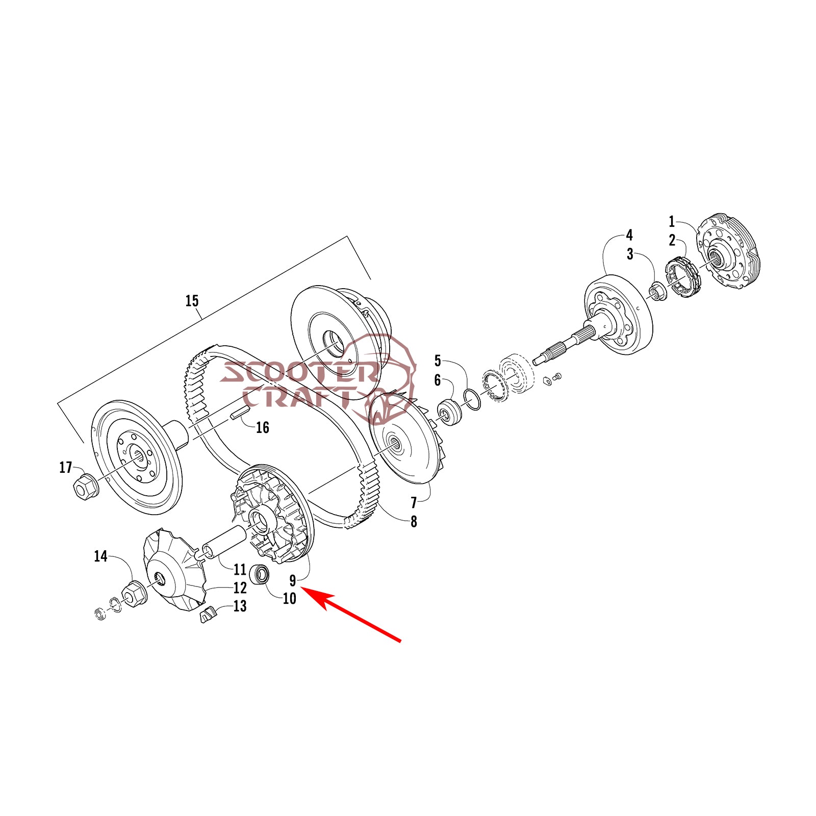 Movable drive face (primary) Arctic Cat ATV 350 CR, 366 4X4 Automatic 08-11, 400 TRV, 400 CR, Alterra 400
