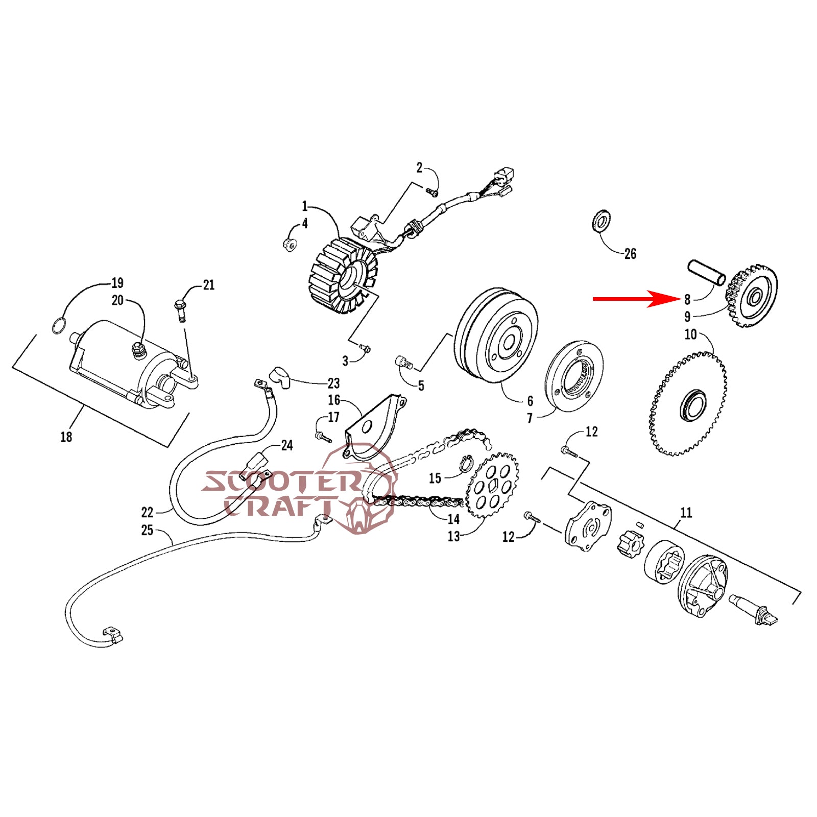 Starter idle gear pin Arctic Cat DVX 250 2006-2008, Utility 250 2006-2009